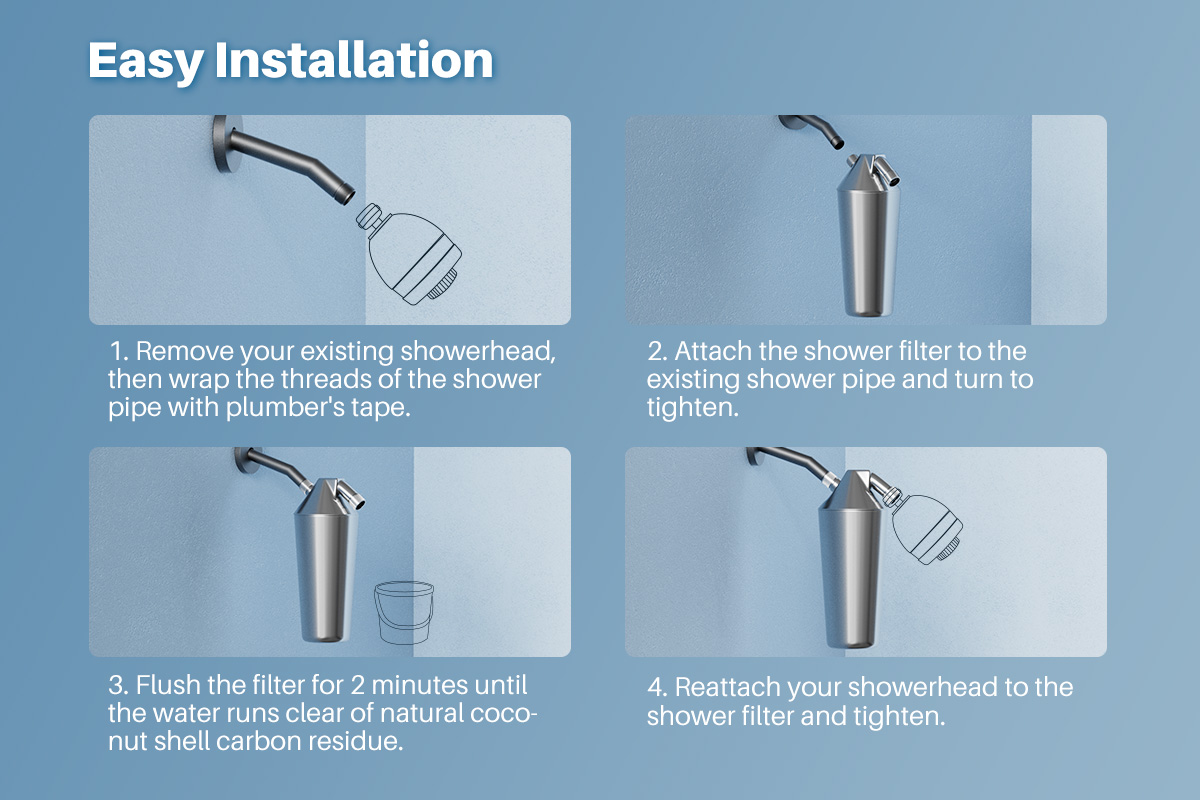 【Full Compatibilty】SF048 It uses a standard 1/2" thread type. EASY to EASY-to-install universal shower filters can be placed on wall-mounted, handheld, rainfall, and combo shower heads for versatile home use.