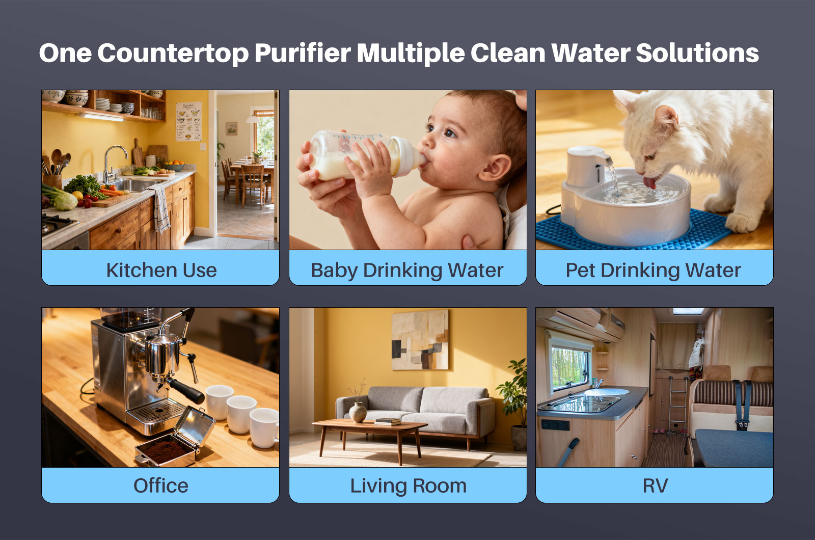【Zero Installation & Portable】The YUNDA countertop RO water system needs no complicated assembly or plumbing. All you need to do is plug it into the socket, fill it the water, and use it. Compared to a traditional under-sink filter, the countertop water filter is more convenient and portable.