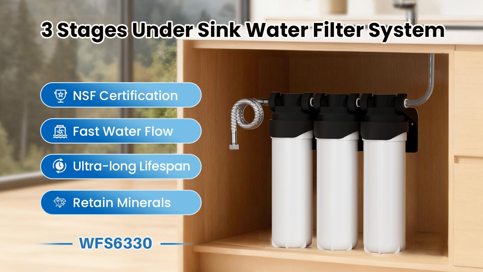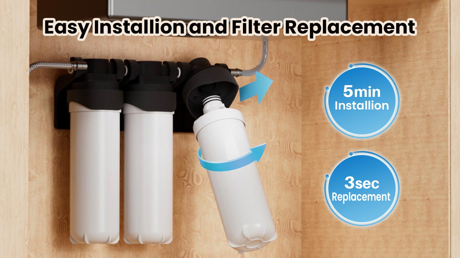【Easy Installion】WFS6330 under-counter water filter is a breeze and can be done in just 5 minutes. The filter element adopts a twist-and-pull design and can be replaced within 3 seconds.